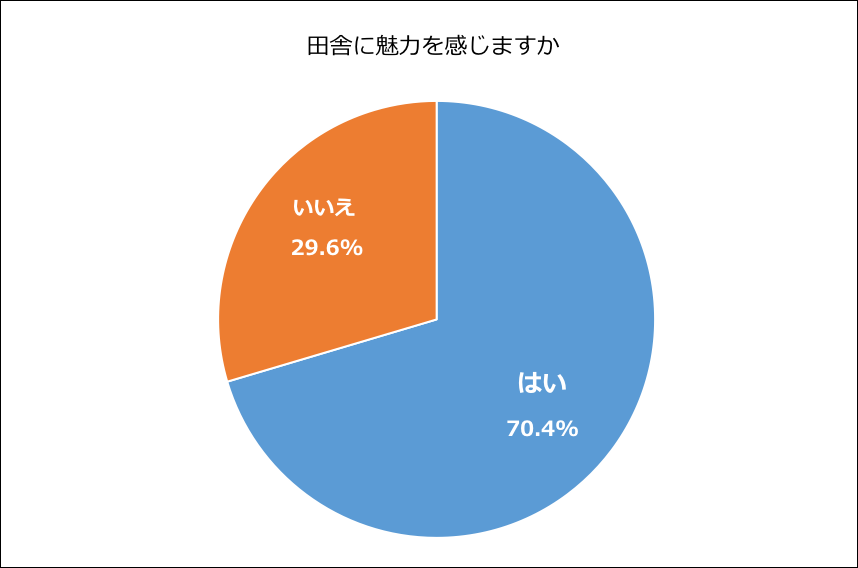 「田舎に魅力を感じますか。」を尋ねたところ、20代女性の70.4%が「はい」と回答しました。